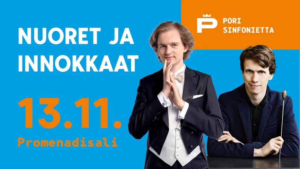 Kaksi nuorta lahjakkuutta tarttuu ohjaksiin Nuoret ja innokkaat -konsertissa. Pori Sinfoniettan solistina pianisti Piotr Pawlak, johtaa James S. Kahane.
